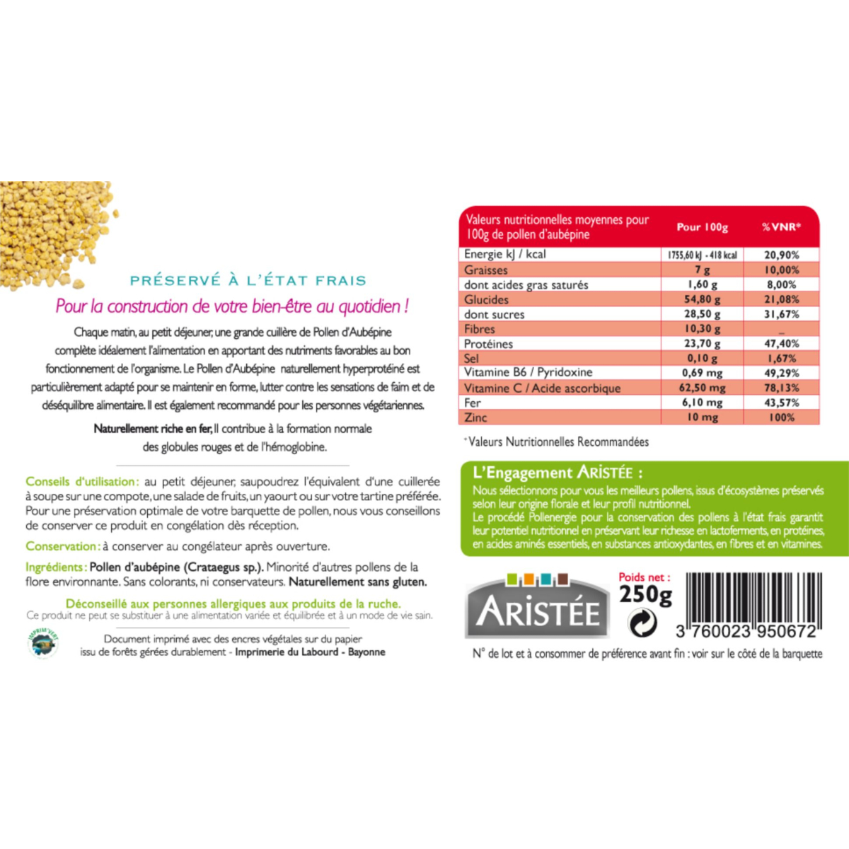 Supplements daily nutritional intake with plant-based proteins and iron. Hawthorn pollen is also recommended to restore dietary balance, recover from intense physical activity, and for vegetarians. 250 g container; store in freezer as soon as you receive your order.