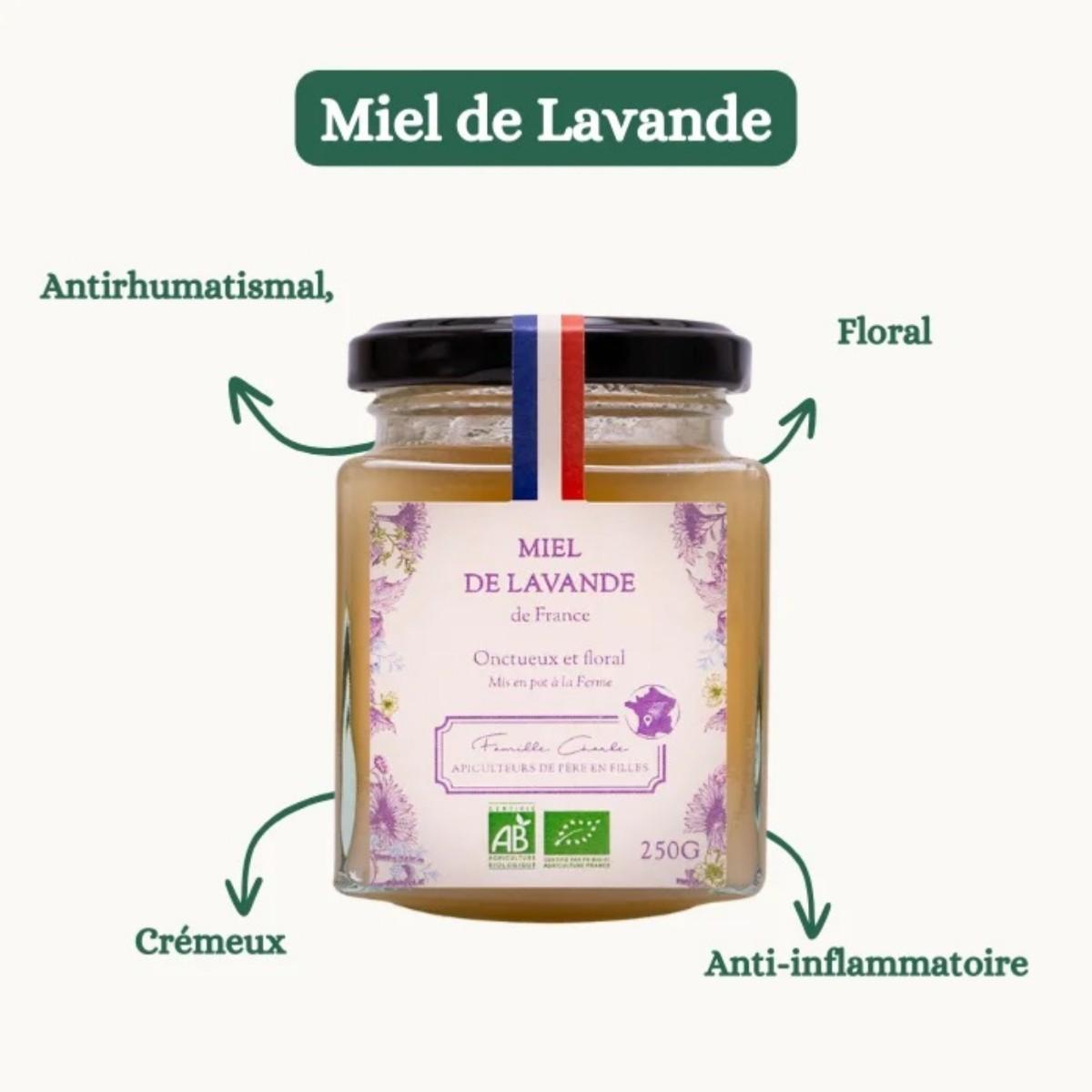 Miel de Lavande certifié BIO récolté par Les Abeilles de Malescot. Pot de 250 g.
